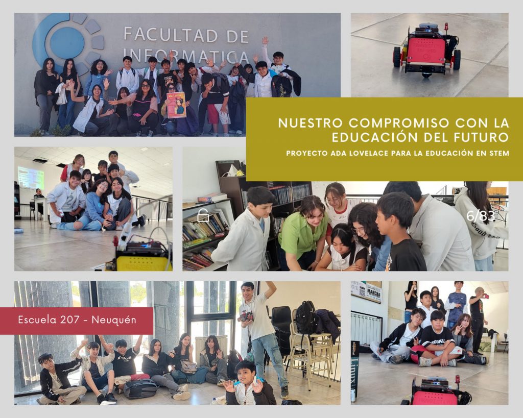 El jueves 30 de octubre de 2025, el living de nuestra Facultad se llenó de creatividad y aprendizaje con la visita de estudiantes y docentes de la Escuela Primaria N.º 207 TM de Neuquén. Esta actividad se enmarca en el “Proyecto Ada Lovelace para la educación en STEM”, la curricularización de la extensión “Lenguajes Declarativos al alcance de las infancias” y el grupo de investigación GILIA.